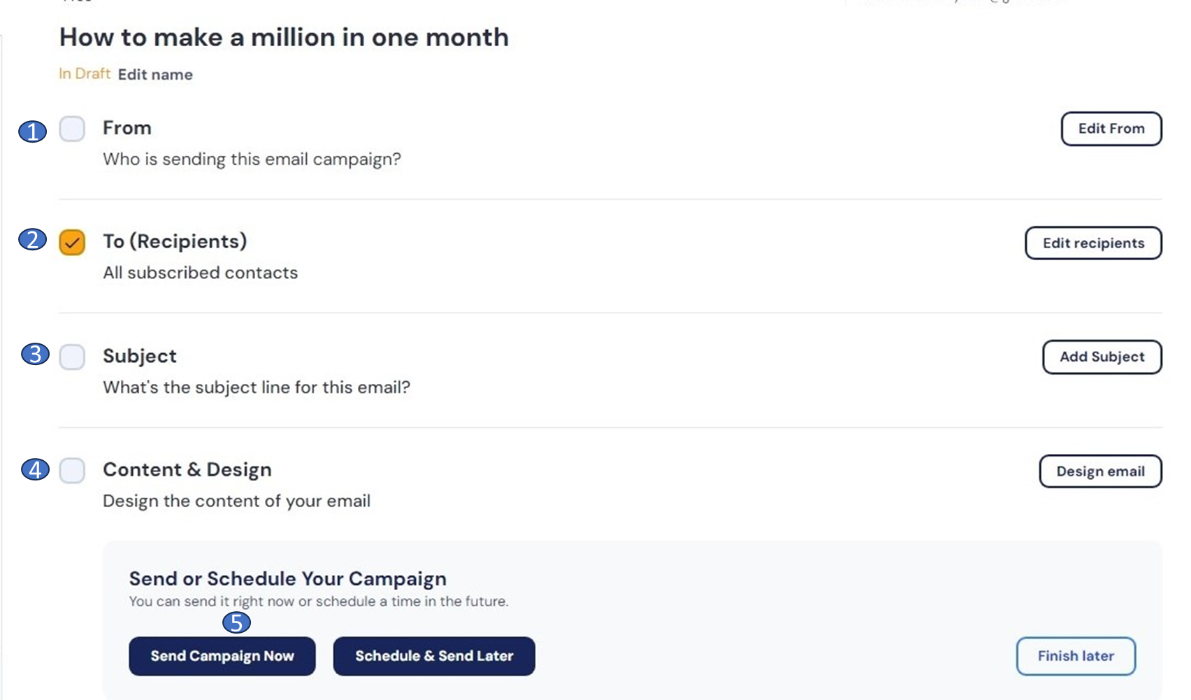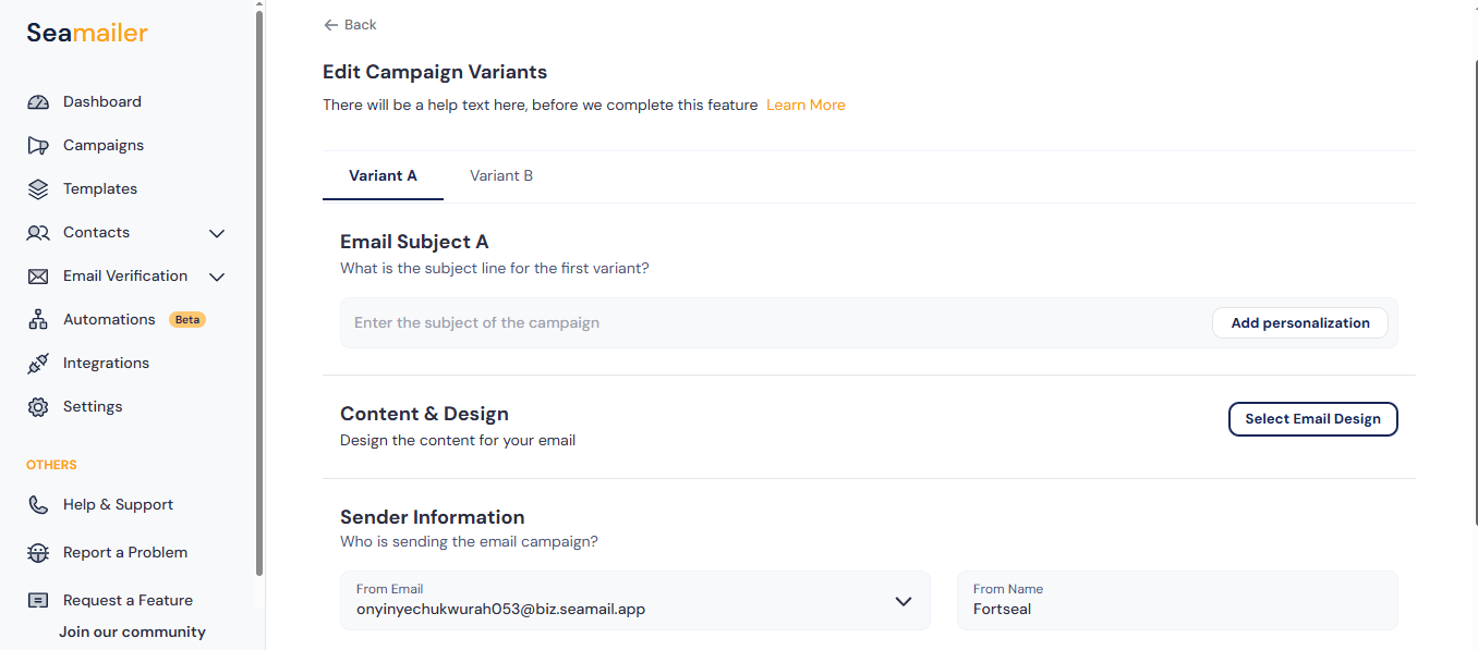 - Intuitive Test Setup: Seamailer's campaign builder allows you to select the variable you want to test (Subject Line, From Name, Email Content, Send Time) with a few clicks. You simply create your two versions, A and B, within the same interface.
