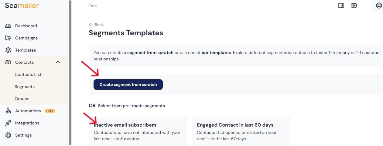 - Trigger: A contact has not opened or clicked on any of your emails in the last 60 days. Seamailer’s segmentation features make it easy to create a list of these inactive subscribers.