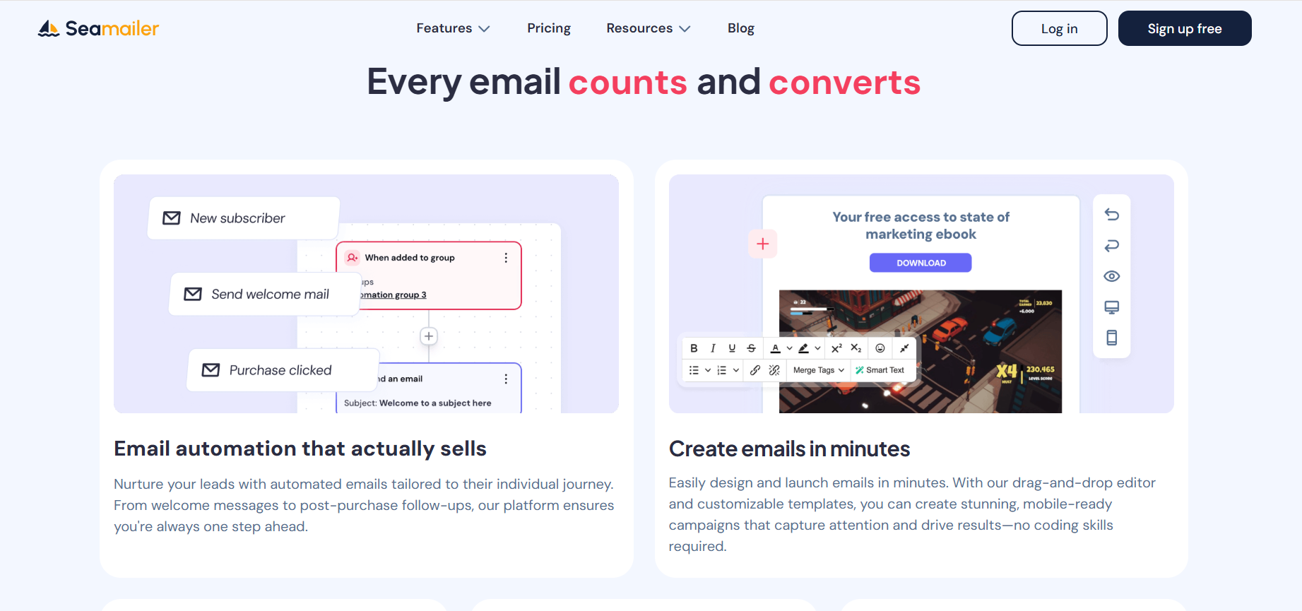 - Seamailer: Combines automation, personalization, and advanced behavioral triggers — all at an affordable price.