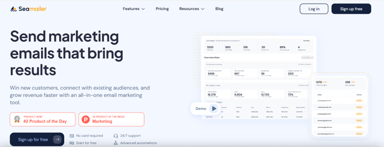 Seamailer offers one of the most affordable email marketing solutions out there — starting free with 12,000 emails monthly and unlimited contacts. Paid plans start at just $ 7 per month, providing you with full features without breaking the bank. It’s powerful, simple, and priced so low it feels like a steal for startups, creators, and small businesses.